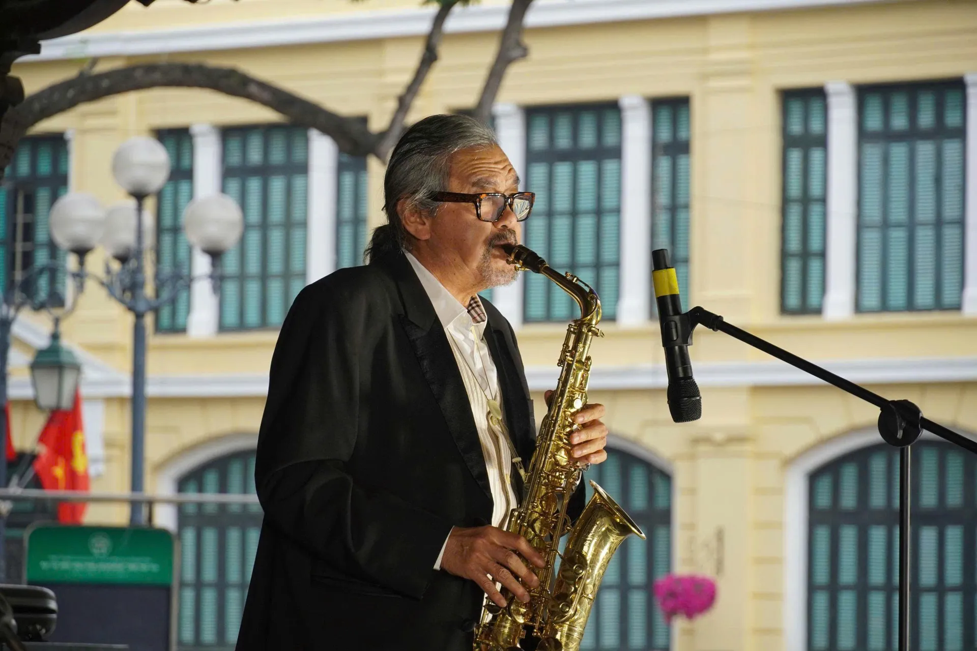 Meritorious Artist Quyen Van Minh captivates audiences with a performance that epitomizes the timeless grace of jazz. Photo courtesy of the program organizer.