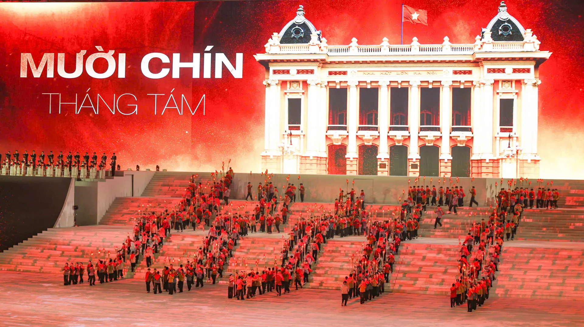 The stage design vividly depicted August 19, 1945, a pivotal moment in the Vietnamese Revolution.