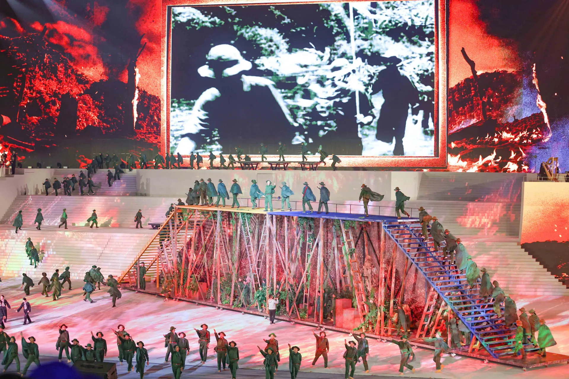 A powerful scene recreated the 1954 Dien Bien Phu campaign, a defining moment in Vietnam’s modern history.