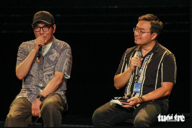 | Kim Jee Woon, a celebrated South Korean director, at a meeting with young Vietnamese filmmakers and audiences at the Municipal Theater in Ho Chi Minh City on April 9, 2024. Photo: To Cuong / Tuoi Tre |