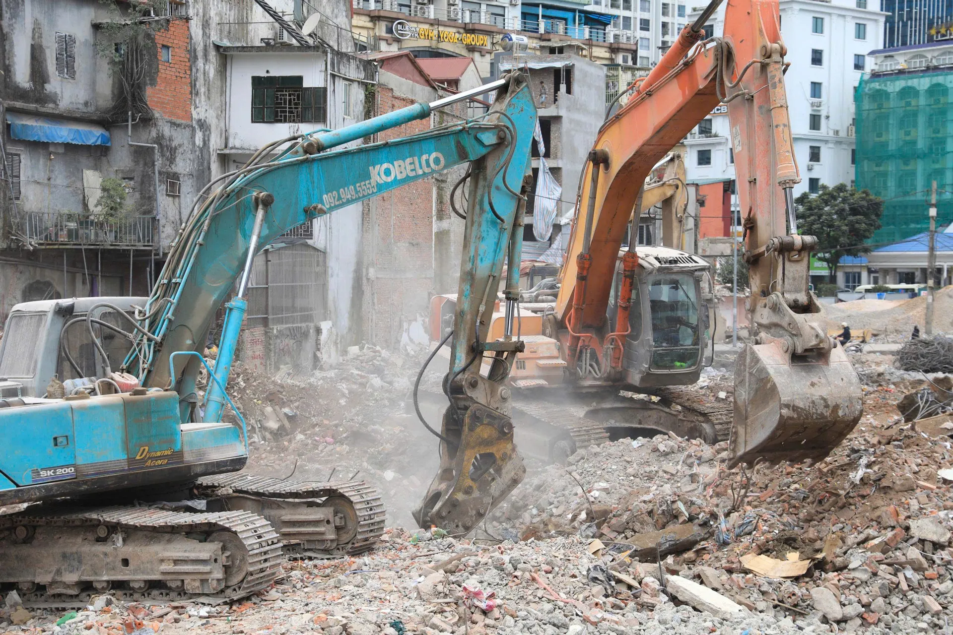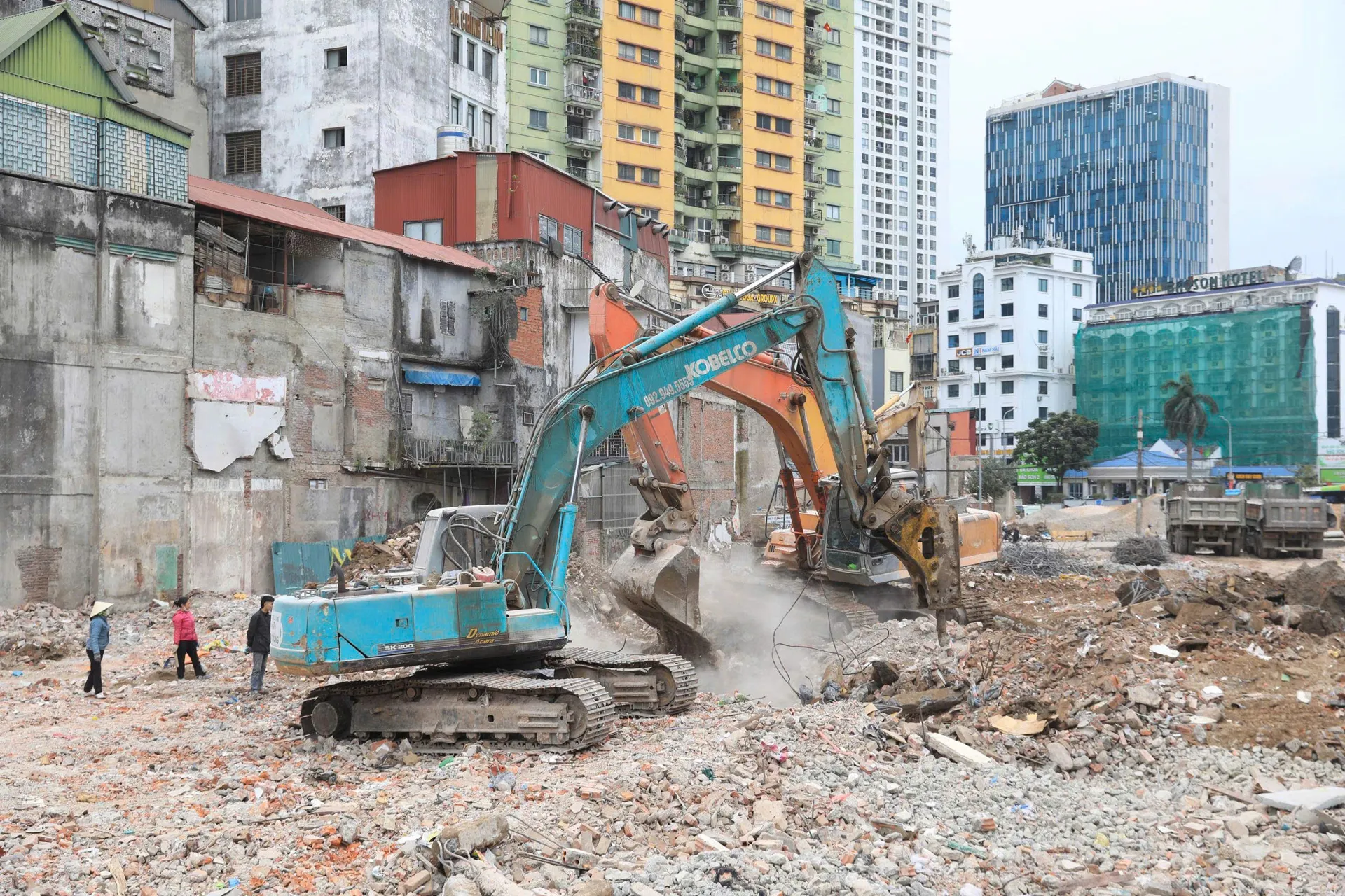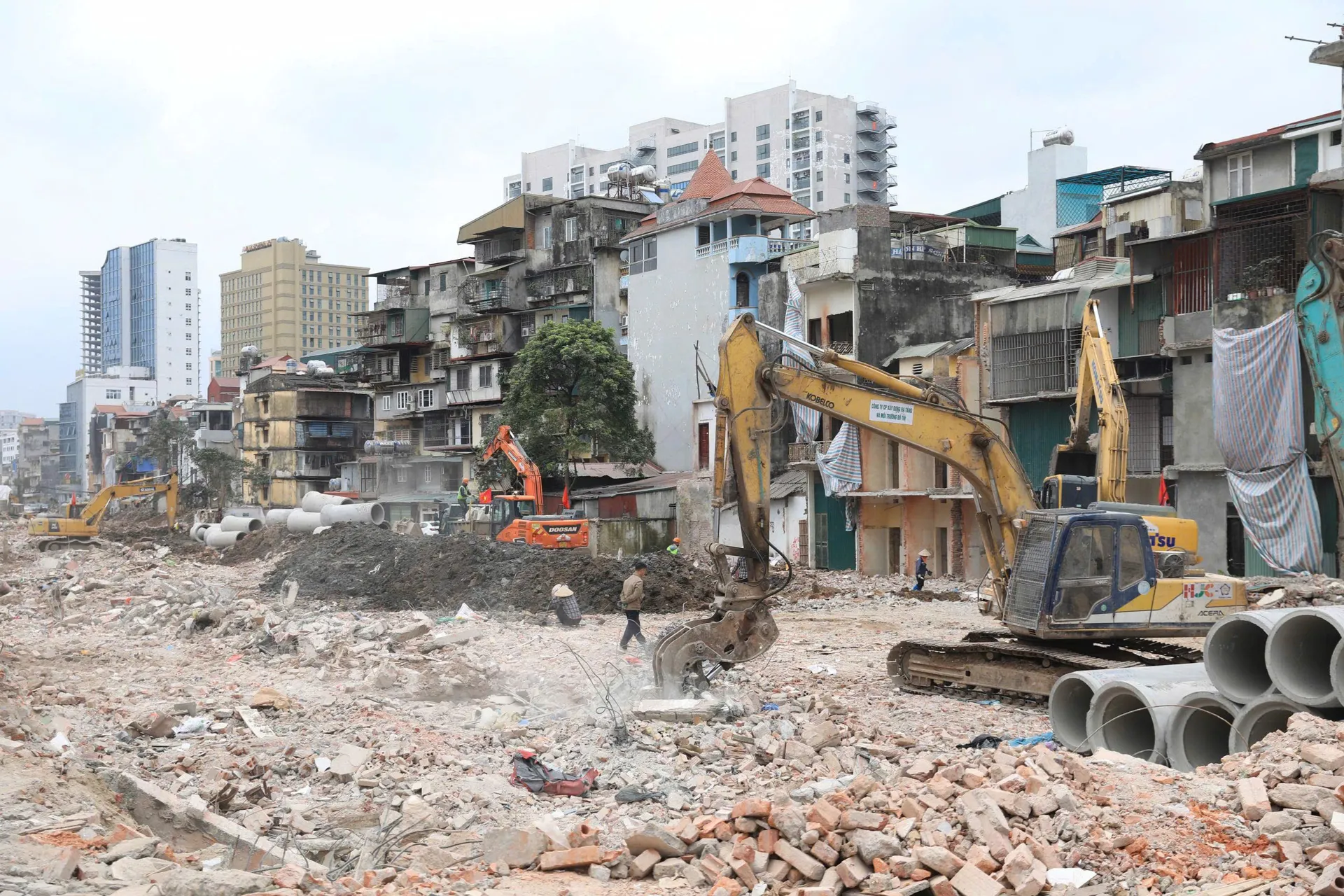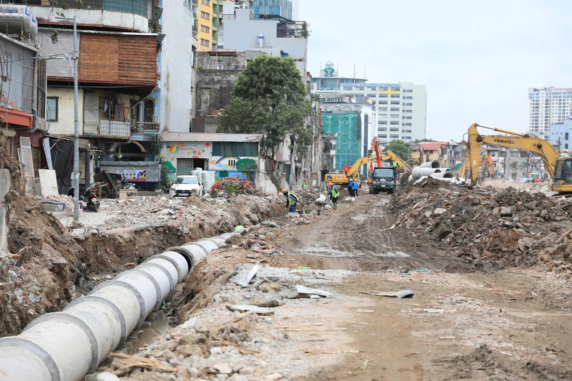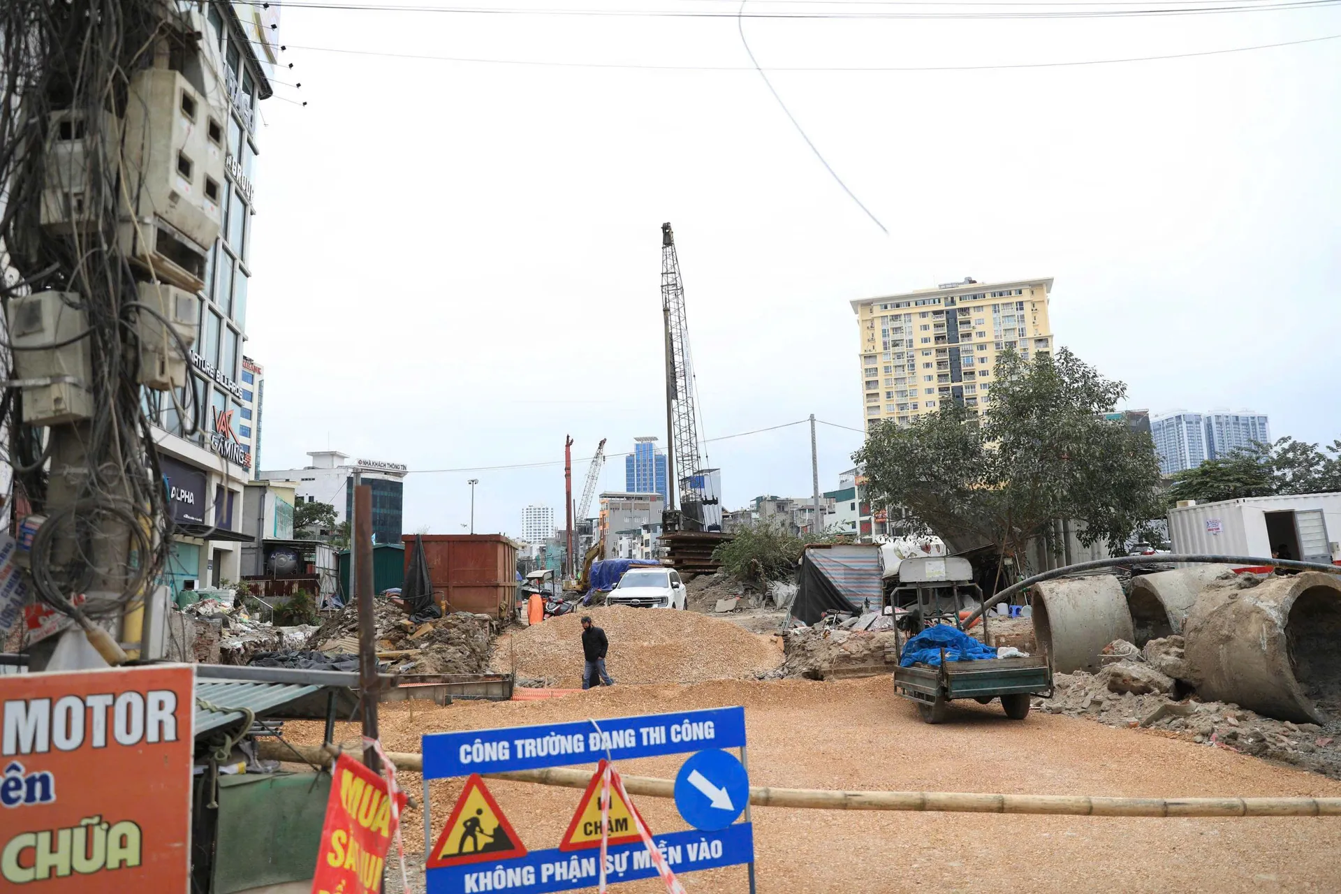 The bustling construction site of the Hoang Cau-Voi Phuc section of Ring Road 1, where machinery and workers are strategically positioned along the route. With site clearance completed, the project is now poised for simultaneous construction. Photos: Duy Khanh/The Hanoi Times