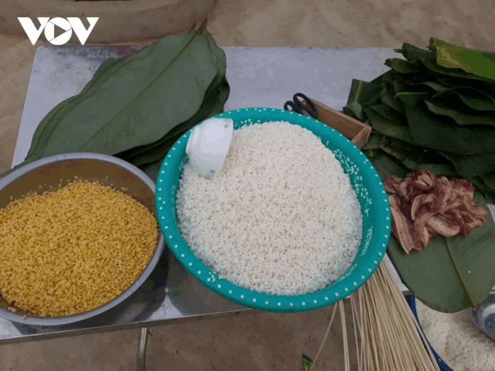 Approximately 20 days before Tet, villagers venture into the forest to gather dong leaves and cut branches from the giang tree. These branches are remarkably flexible, perfect for tying the cakes. From the 28th to the 30th day of the 12th lunar month, families begin preparing the glutinous rice, pork, green beans, or black-eyed peas (some prefer peanuts) for the bánh chưng.
