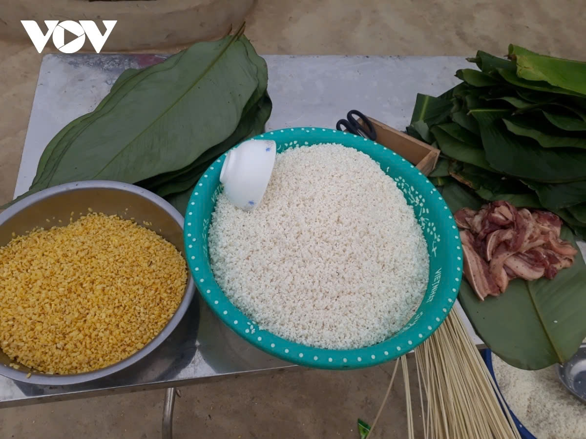 The Thai community crafts two distinct types of bánh chưng: bánh chưng ống (tube-shaped) and bánh chưng gù (humped).