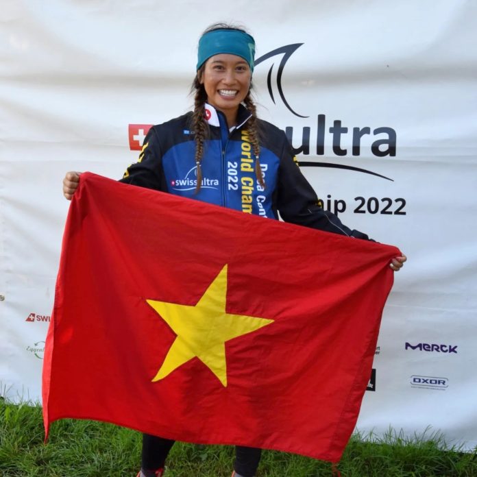 | This Facebook post shows Vu Phuong Thanh reacting after winning the women’s event of the Deca Ultratriathon World Championship 2022 in Switzerland, August 28, 2022. Photo: Swissultra |