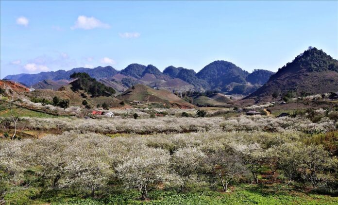 Nestled in Vietnam’s Northwest highlands, Moc Chau awakens each spring with a breathtaking display of white plum blossoms. As the season’s first breezes sweep across the plateau, entire valleys and hillsides are draped in delicate blooms, transforming this serene region into a painter’s paradise.