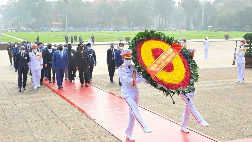 President Julius Maada Bio, his spouse and a delegation of Sierra Leone, pay tribute to Vietnamese heroes and fallen soldiers.